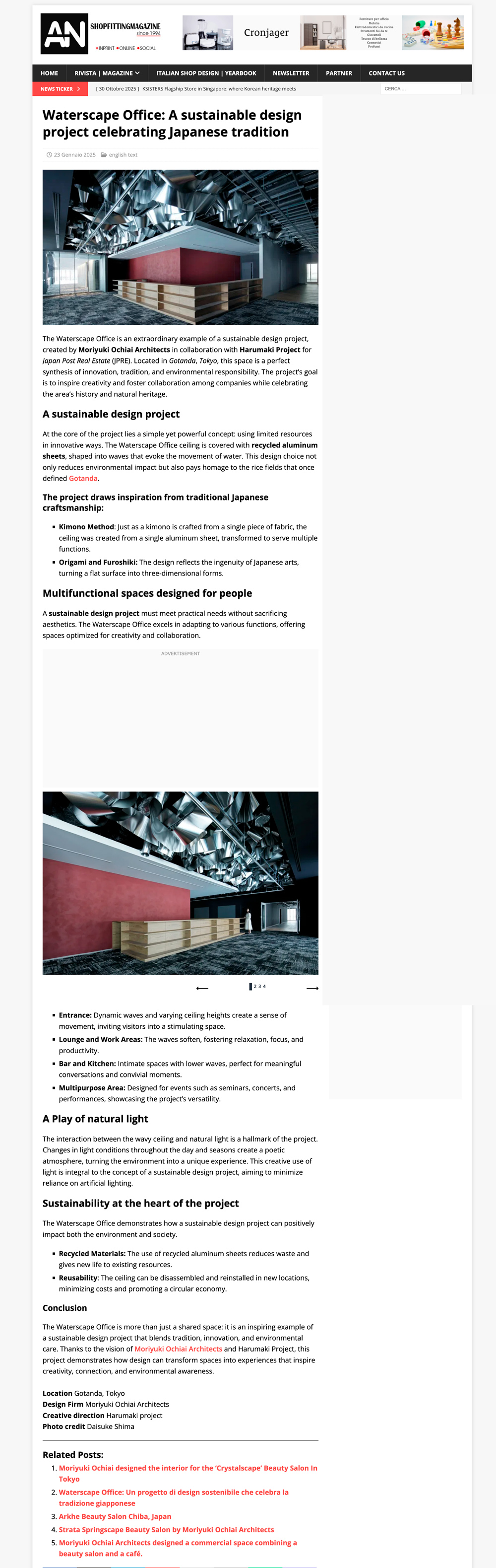 イタリアの雑誌「AN SHOPFITTING MAGAZINE」に「 Waterscape office 」が掲載されました。
